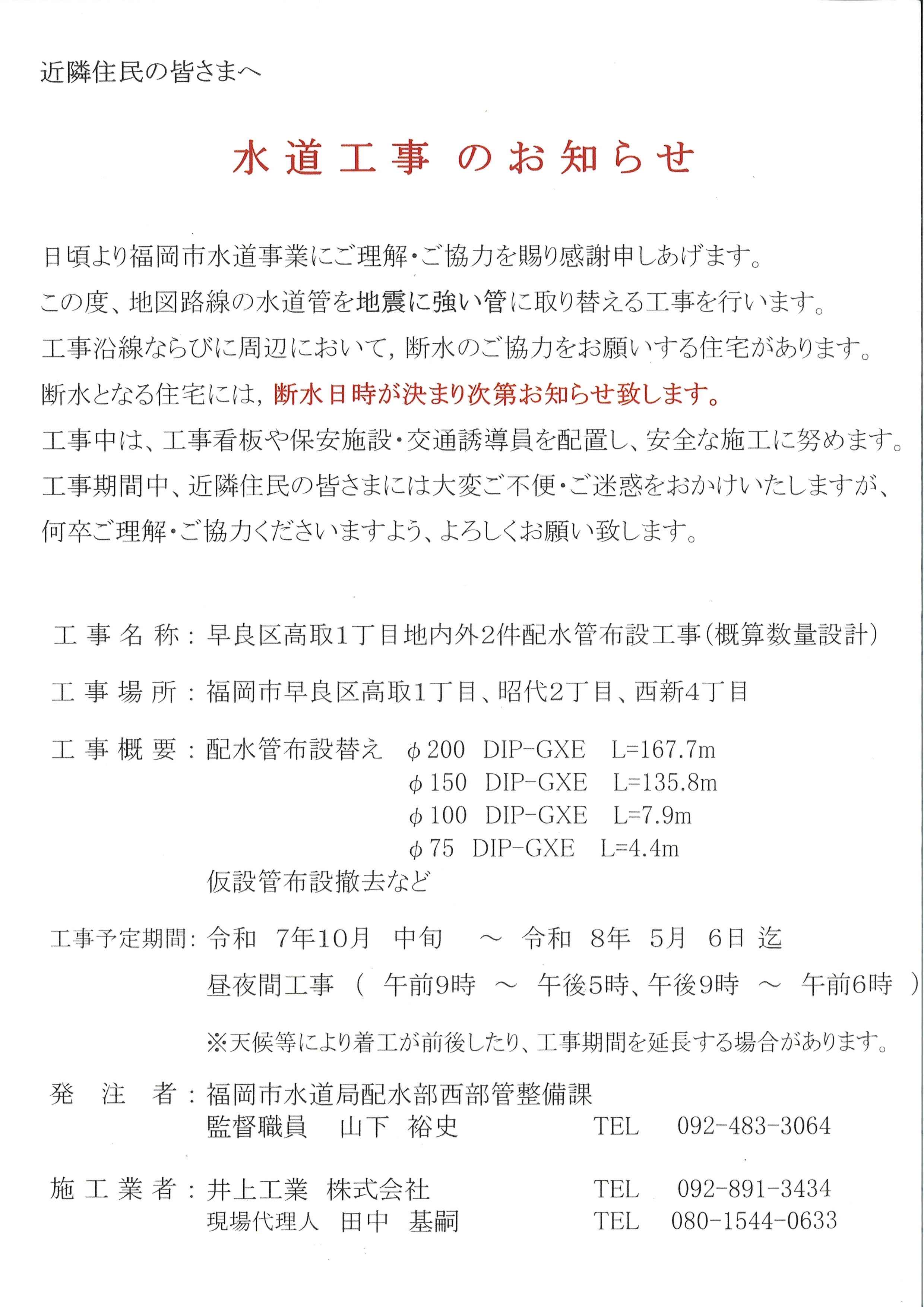 水道工事のお知らせ